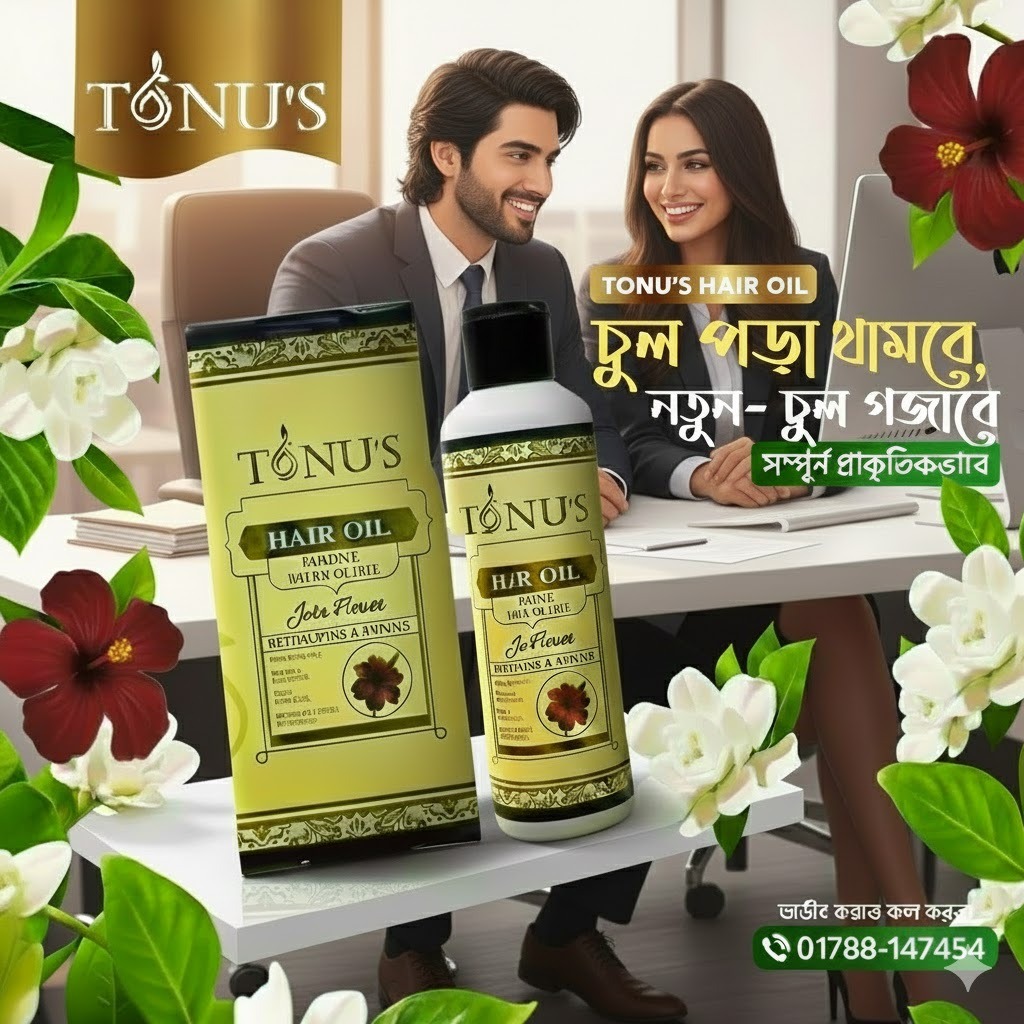 চুলের জন্য উপকারী সম্পূর্ণ ভেষজ উপাদানে তৈরি তাসা এন্ড তোহা হেয়ার অয়েলে চুল পরা বন্ধ হবে নতুন চুল গজাবে ঘন হবে এবং খুশকি দূর হবে খুব তাড়াতাড়ি। চুল লম্বা হবে এবং গোড়া থেকে হেলদি হবে। টাক মাথায় চুল গজানোর রেকর্ড আছে। তাসা এন্ড তোহা হেয়ার অয়েল ল্যাব টেস্ট করা হয়েছে এটা পরিক্ষিত এবং বি এস টি আই অনুমোদন প্রাপ্ত তেল। প্রতিদিন শত শত রিভিউ আসে আলহামদুলিল্লাহ।আপনিও উপকার অবশ্যই পাবেন শুধু নিয়মিত ব্যবহার করতে হবে।